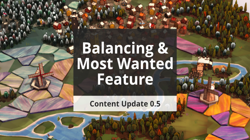 Last year we presented you our roadmap with the development plans for Dorfromantik during its Early Access period. Since then we have successfully completed and published all milestones, and are approaching the upcoming 1.0 release this spring. We wanted to thank you for accompanying us through the last year. Now, what would be more appropriate than an additional update 0.5 with a little surprise?