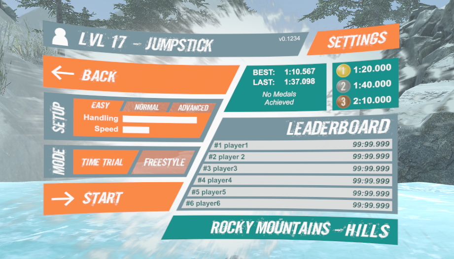 By popular request we have added a new "freestyle" mode. This means you don't set any time on the leaderboard but you take no damage and your powerups are instantly replenished. It's all about thrashing down the course without a care in the world!