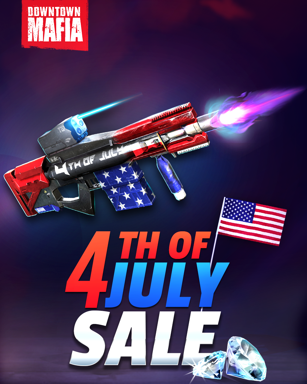 Grab the Special Deathray Rifle Now β¨ Limited item expires in 6 days !! π http://onelink.to/5p5wtp #4thjuly #downtownmafia #gangster #saletime#limitededition