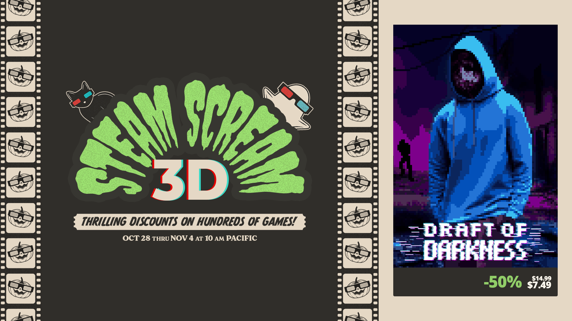 Draft of Darkness will be 50% OFF during the Steam Scream Fest. Don't miss out!
