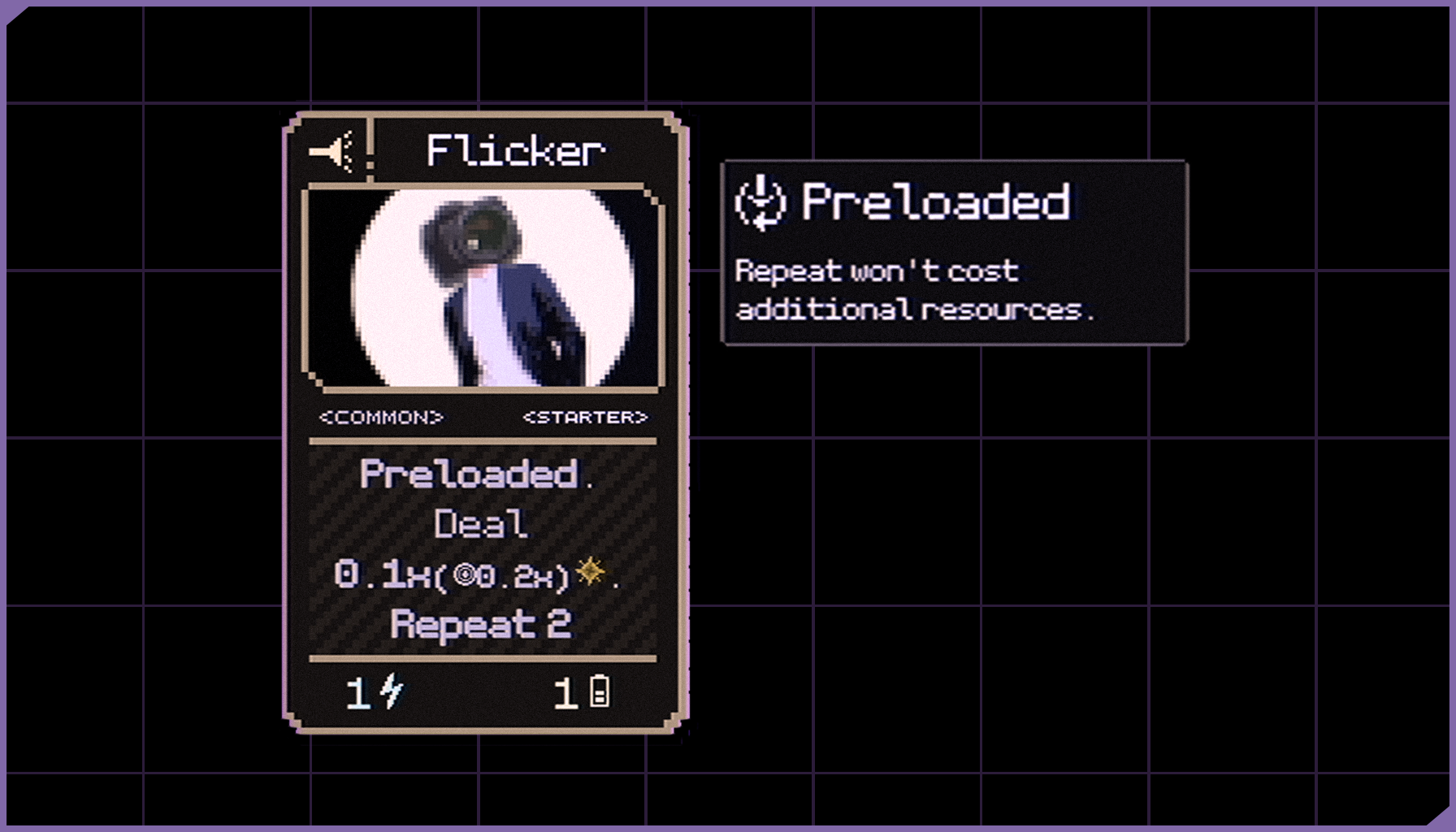 - New Challenges: Mona’s Image, Cian’s Image. These challenges allow you to fight the two bosses that were only available in the Story Mode. - Changed “The Darkness Prowls” boss fight to also include the second phase of Daemon. This allows fighting Daemon II outside the Story Mode. New consumable effects: - (Item/Consumable) Flare: (Encounter) Apply Revealed 1 to all enemies (including ones who have Stealth). Can be used once per turn. - (Item/Consumable) Matches: (Encounter) Deal 10 Unscaled Burn Damage. Can be used 3 times per turn. Balance changes: - Reduced credit gain on abandon by 50%. Run wipe patch refunds are unchanged. - Boss Rush penny drop is reduced by 50%. Boss card drops are reduced from 5 to 3. Duo Boss Rush is unchanged. - (Card/Pistol) Hidden Weapon: Base Crit Chance / Crit Multi increase 10%->20%. Increase per weapon swap 10%->20%. - (Card/Flashlight) Flicker: Now has keyword “Preloaded” (won’t cost resources on Repeat.) - (Card/Flashlight) Blunt Hit: Damage 1.25x->1.5x. (+1: 1.5x->1.75x) - (Card/Flashlight) Cascading Light: Energy Cost 2->0. - (Card/Flashlight) Dim Light: Non-upgraded version also has the effect to reduce Resource Costs by 100%. Power decrease 50%->60%. (+1: 50%->40%) - (Card/Flashlight) Sunburn: Energy Cost: 4->3. - (Card/Flashlight) Snap Out of It: Layers removed: 1->3. - (Card/Syringe) Blinding Needle: Damage 0.8x->2x(4x). - (Card/Syringe) Squirt Acid: Energy Cost 4->1 (+1: 3->1), Damage 1x->0.5x(1x). (+1: Damage increase per condition applied 0.3x->0.5x) - (Card/Shield) Shield Bash: Energy Cost: 3->1. Damage per shield 2->3 (+1: 3->5) - (Card/Shield) Overwhelming Presence: Energy Cost 4->0. - (Card/Shield) Patronize: Energy Cost 4->0. - (Card/Shield) Guardian’s Blessing: Energy Cost 5->3. - (Card/Dark Cannon) Clarity: Energy Cost 3->0. - (Card/Dark Cannon) Crushing Darkness: Base Damage 0.2x->0.5x. Damage per Time Manipulation 0.6x->1x. (+1: 1x->1.8x) - (Card/Dark Cannon) Dark Wave: Energy Cost 4->3. - (Card/Dark Cannon) Recall: Energy Cost 2->0. - (Card/Dark Cannon) Strip Essence: Energy Cost 5->0. - (Card/Unarmed) Sprint: Draw count 2->1 (+1: 3->2.) - (Card/Unarmed) Heavy Punch: Energy Cost: 5->3. - (Card/Other) Cut Tentacle: Energy cost 5->3. - (Card/Robot) Unstable Core: Energy Cost 3->1. - (Status/Perk) Dissolver: Also affects Burn Damage.