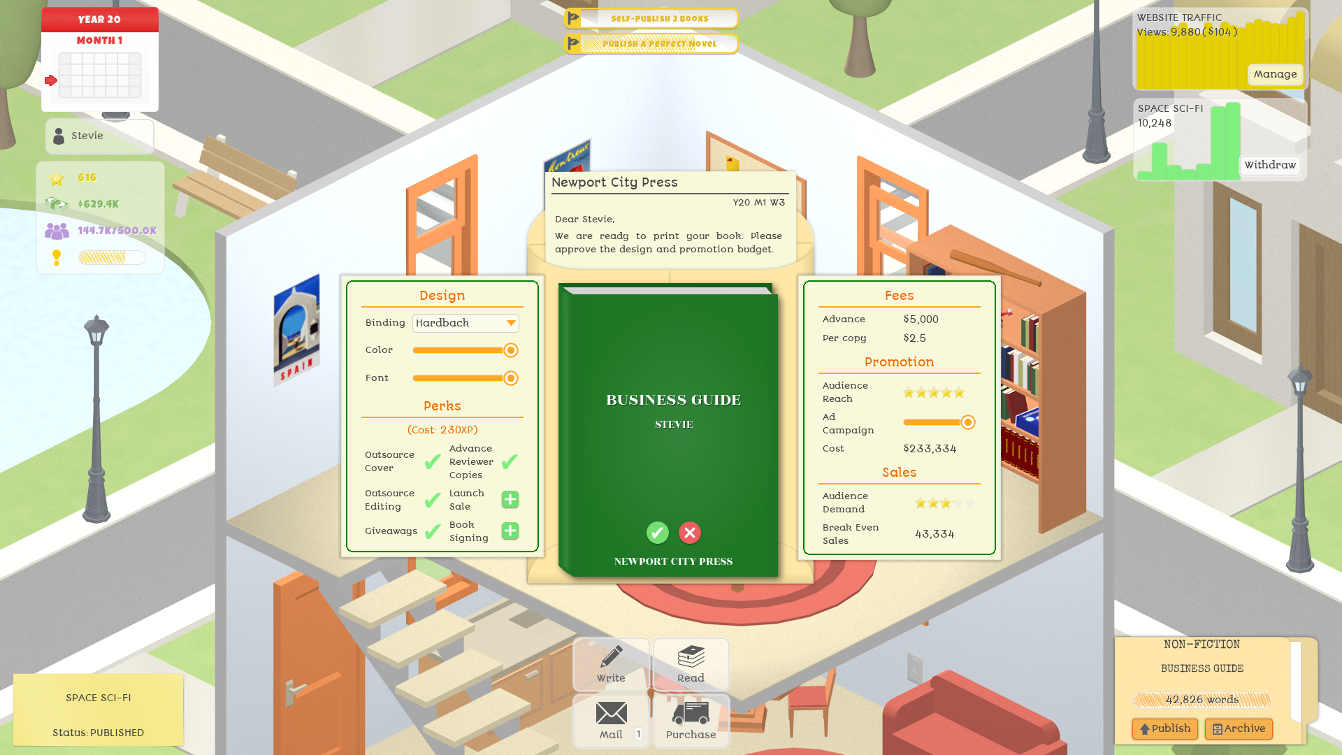 Publisher's audience reach now linearly affects fan gains and book sales.