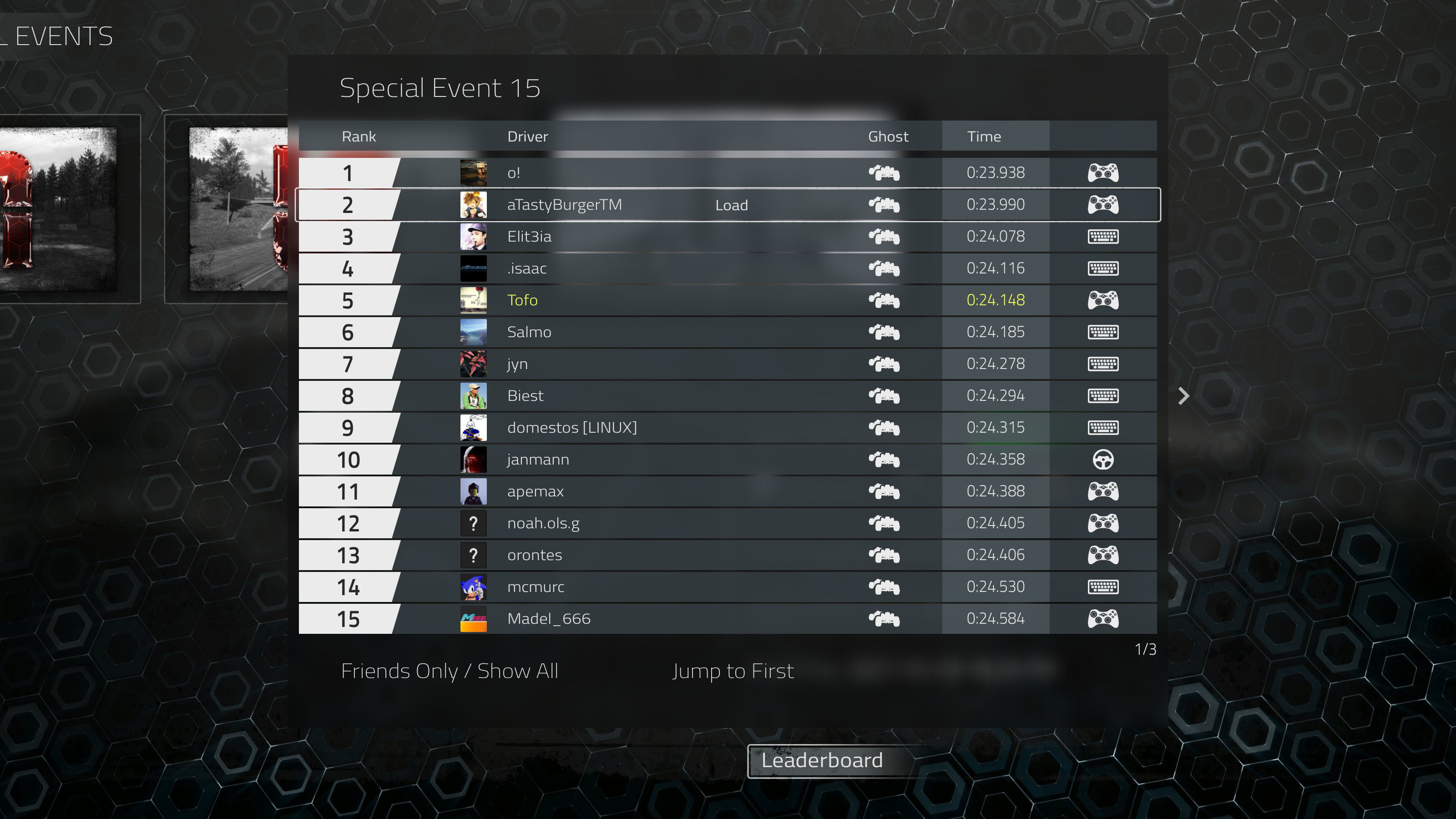 You can now view the leaderboards directly in the game. The leaderboards not only shows which input device was used, but you can now load the ghost of another player. There is also an option for friends-only leaderboards.