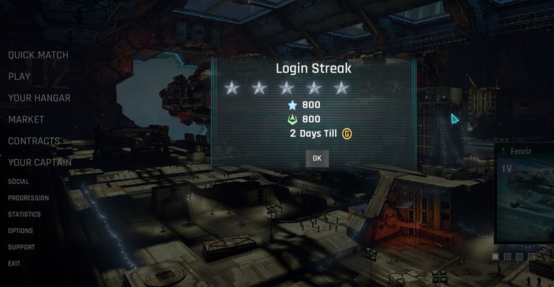 You will now receive daily rewards based on how often you play Dreadnought. You will achieve the highest rewards if you maintain a "login streak" playing for several days in a row.