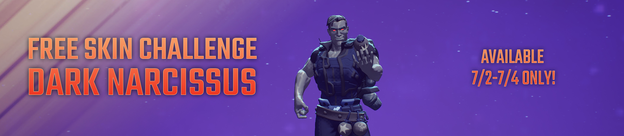 Log in this weekend to activate our final free skin challenge! Complete the challenge before it expires to score an exclusive free skin for Hibbs, Dark Narcissus. Make sure to claim the completed challenge before Monday, July 5th!