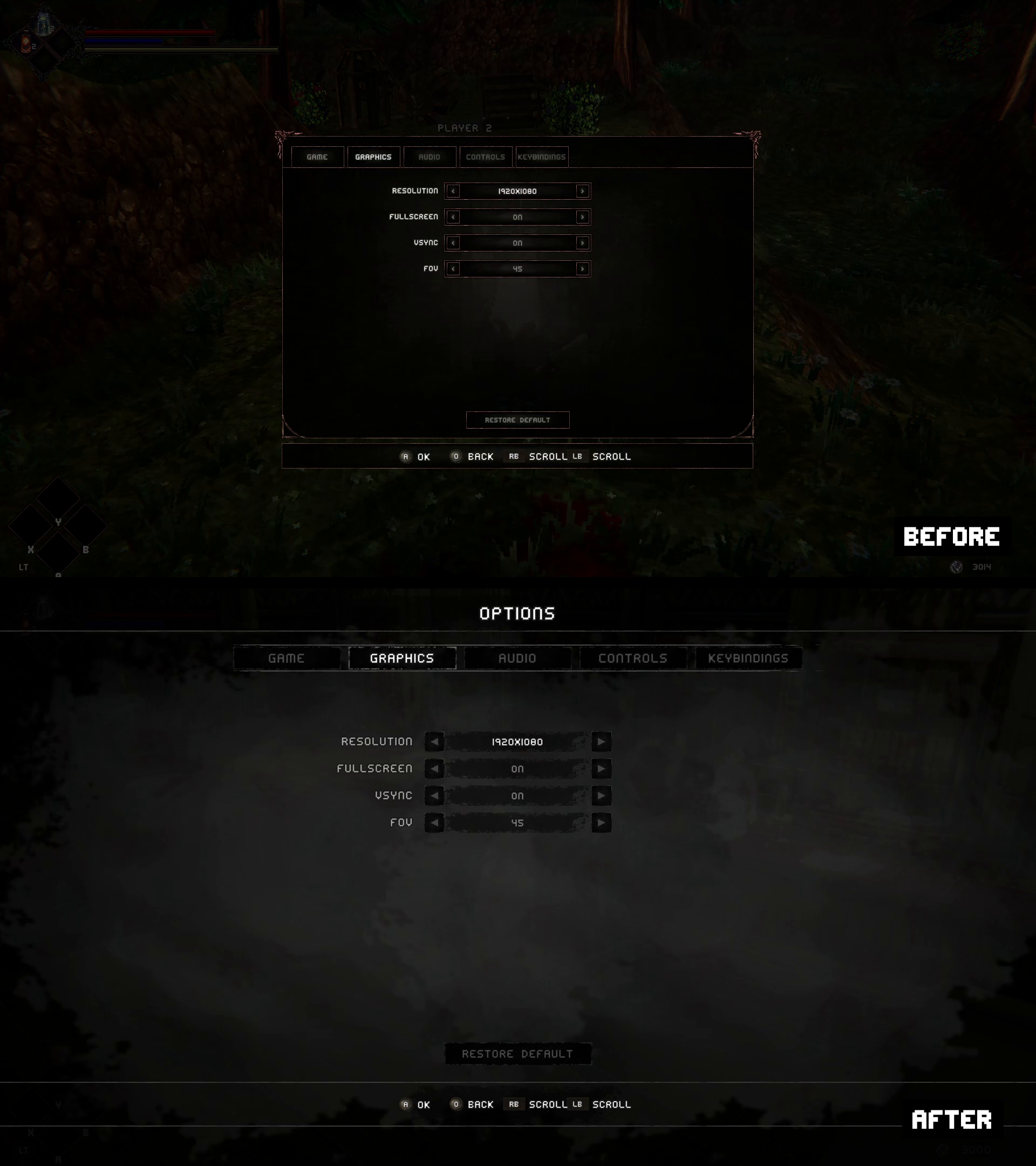 ▻ Changed UI for inventory ▻ Changed UI for equip menu ▻ Changed UI for level up up menu ▻ Changed UI for game options