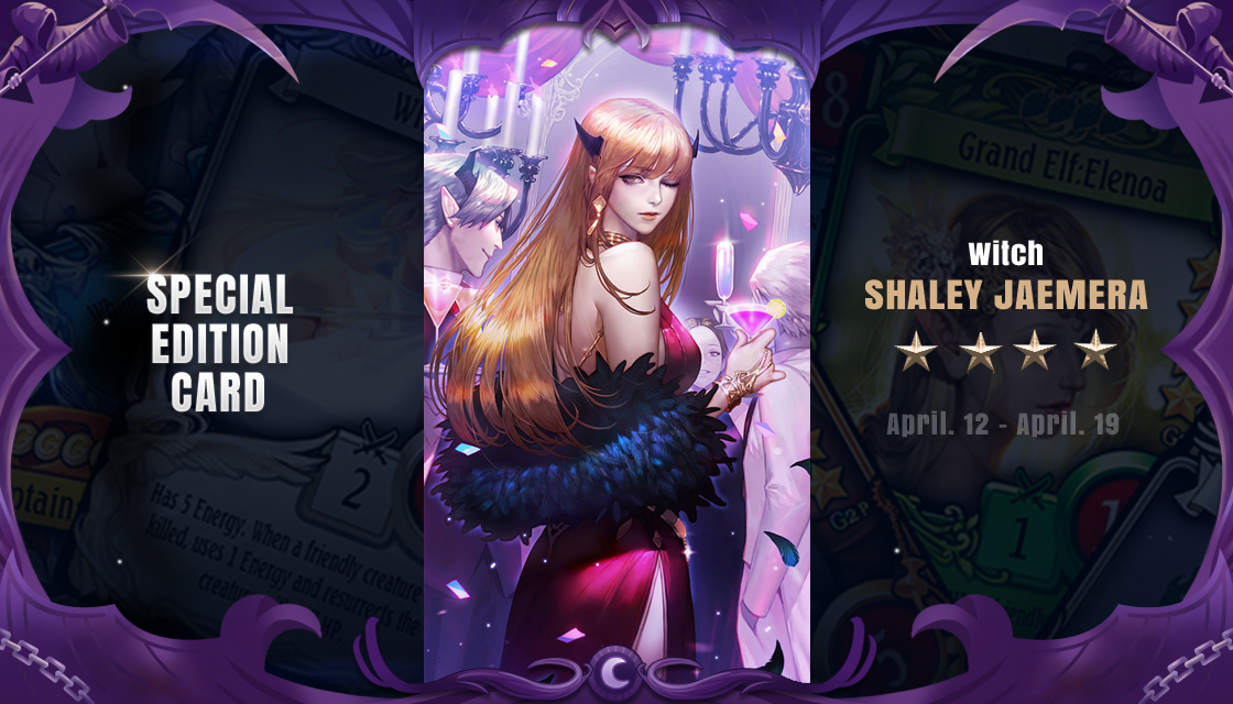 For a limited time between 4/12-4/19, players can pull a Special Edition Witch: Shaley Jaemera from all booster packs with a 1% drop rate!