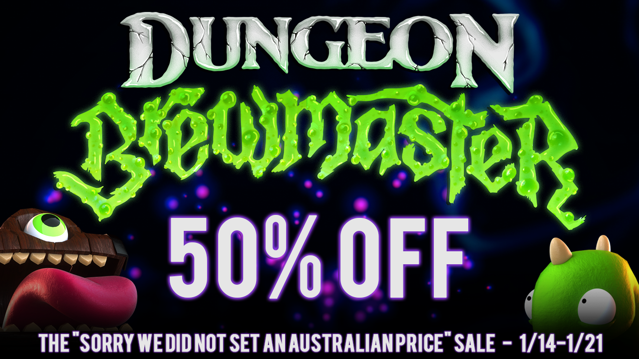 Thank you to our future Australian Brewmasters for letting us know our game was not available to them! From 1/14 - 1/21 Dungeon Brewmaster will be 50% in honor! Thank you to everyone who has been playing and hopefully we will have updates on updates soon