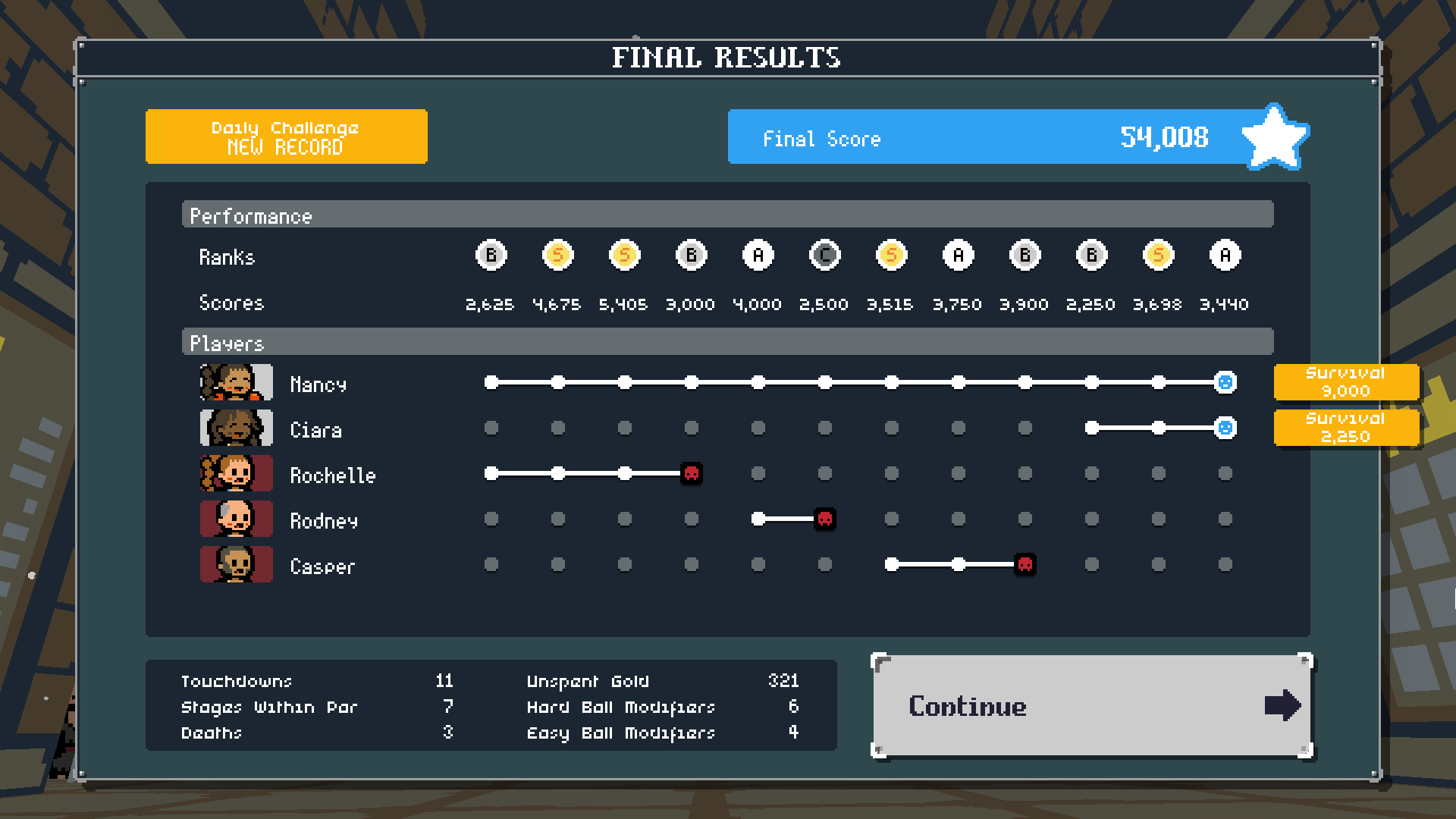 Survival Bonus for any player who makes it to the end (750 points per stage survived).