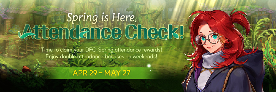 Time to claim your DFO Spring attendance rewards! Enjoy double attendance bonuses on weekends!