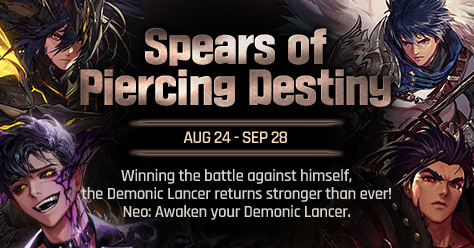 < Contents & Events > - Demonic Lancer Neo: Awakening - Black Purgatory Guide/Squad Mode - Spears of Piercing Destiny - Arcade Fighter Online - The Lance Sharpener - Epic Rental Service - Path of the Seasoned Surfer