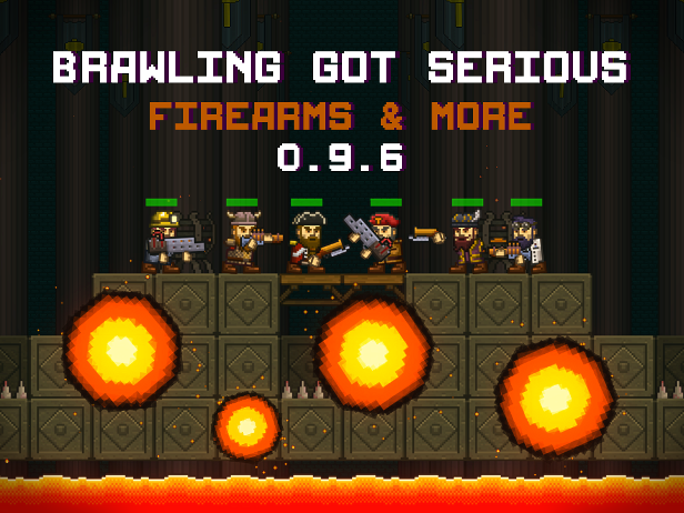 0.9.6 is now live, and three new weapons were added: Melee-gun, Repeater, and Rocket Launcher! There is also a mode for firearms only action, numerous weapons were balanced, and on-lava respawn fixed.