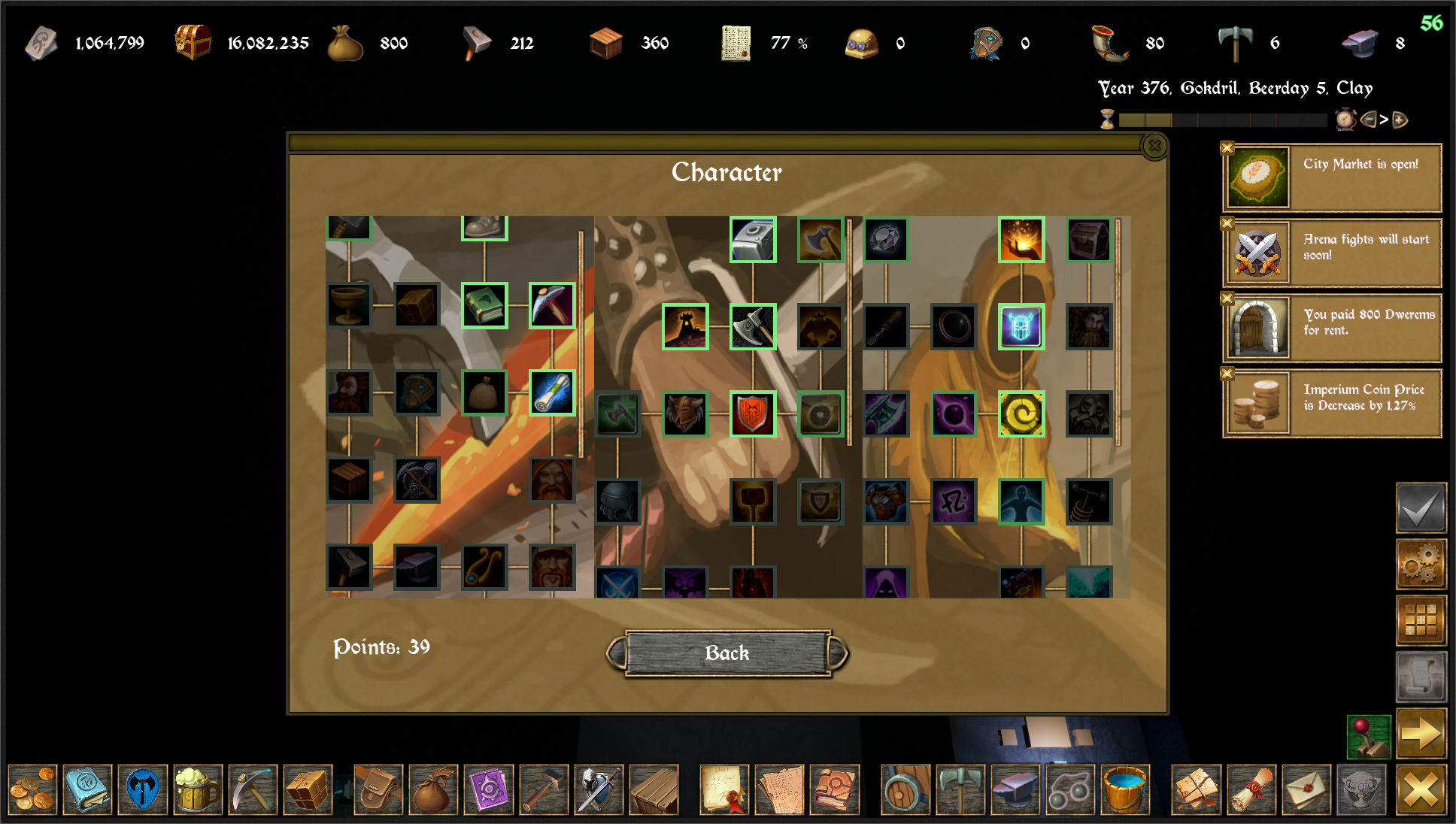 Technology's allow you to craft more items types and improve their quality they research each day after choosing needed goal. Character Skills and Talents are divided buy three ways: Forge, Battle Skills and Magic. They can be get while leveling a main dwarf. Its impossible to learn all of them so get paths that will help you for your specialization.