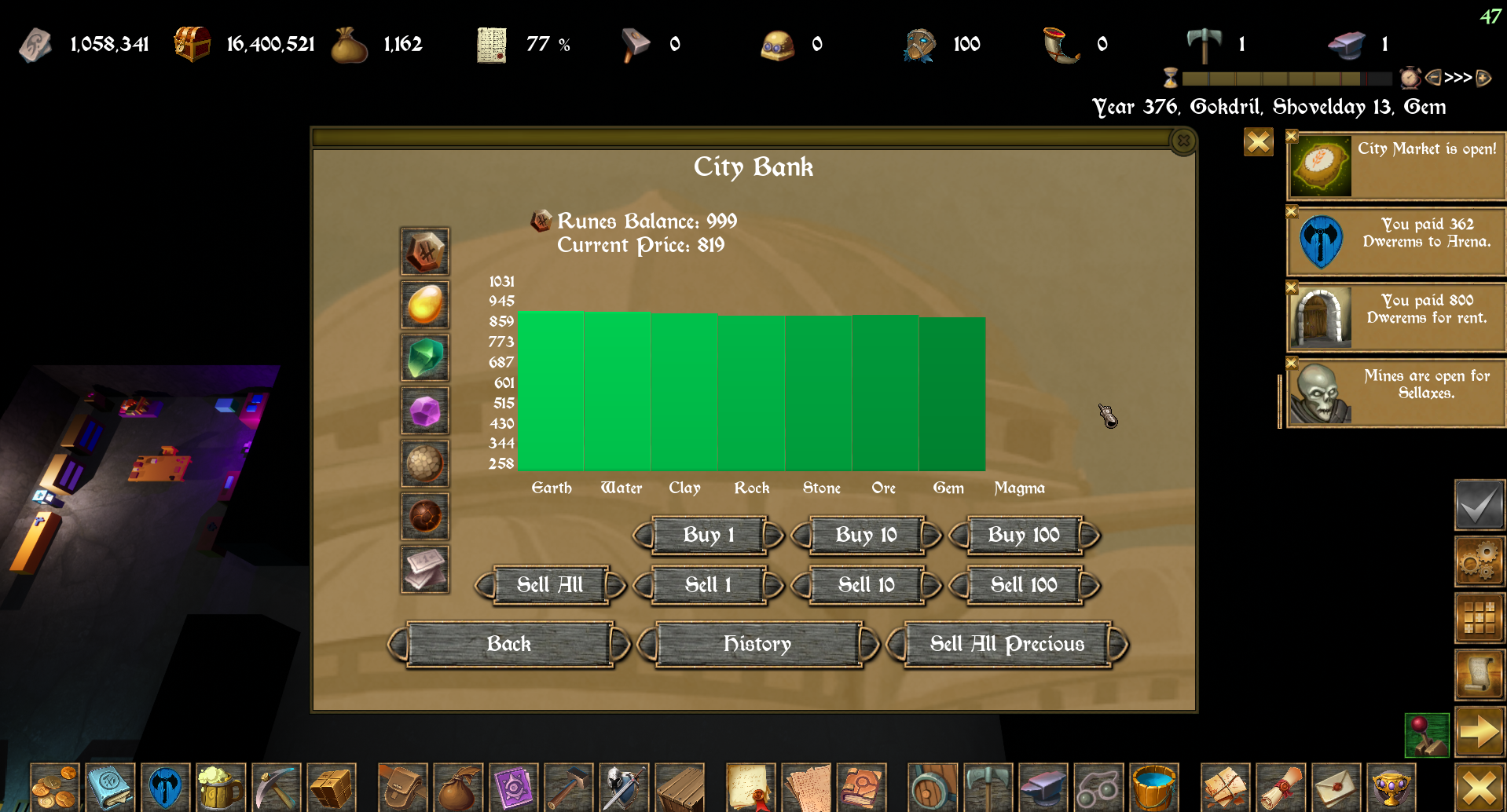 If one doesn't follow the Dwarven laws he can easily find himself thrown into jail. There awaits the hard work of digging crystals. The only one hope? to get out is to collect all the amount of crystals rate. The number depends on the hardness of the crime.