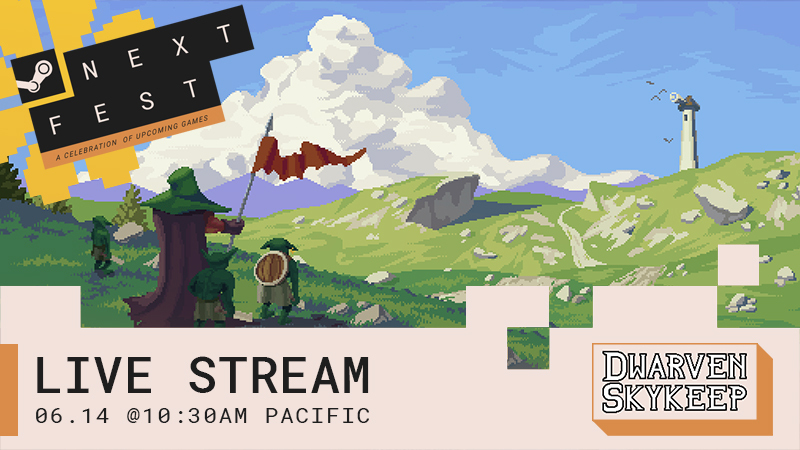 Taking part in Steam Next Fest along with other awesome games, we are happy to announce that you will see Dwarven Skykeep live stream which will start 06.14 10:30 AM (PST)! In order to celebrate the fest, we are going to stream 24/7!
