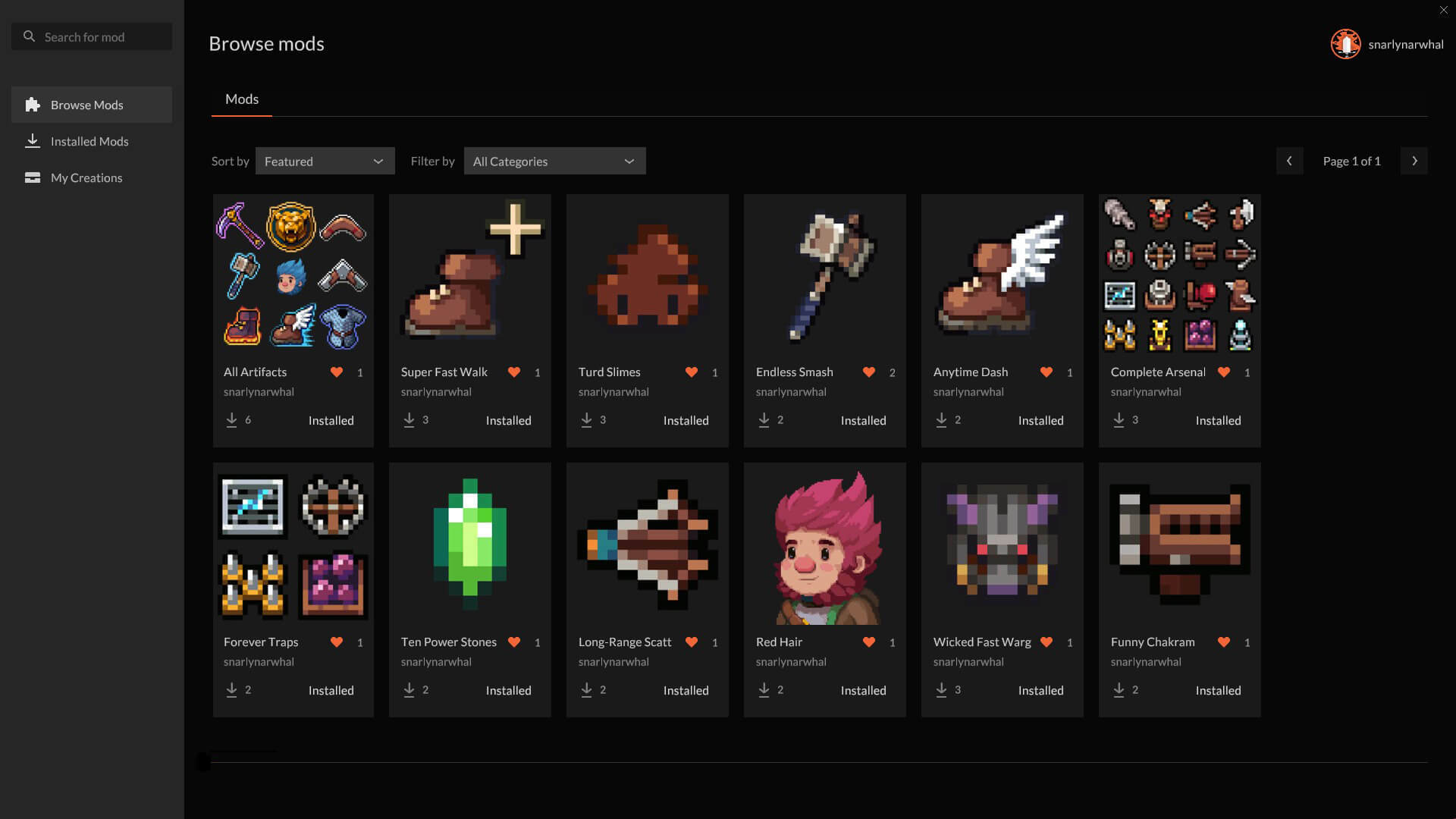 The mod system lets you customize the stats and sprites for Dwerve, towers, and enemies. You can also mod the general game configuration which determines when towers, power stones, and artifacts get unlocked. For example, you could reskin a turret, and have it deal massive knockback! 🥊