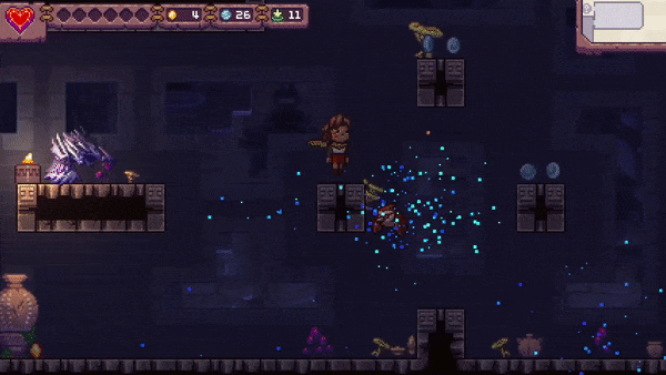 Aiming Quill and Fia utilize a multi-directional aim. However, their range to throw Koji/Kusako respectively is limited without the proper runestone! Players can take advantage of this directional aim to hit enemies beyond narrow pathways, traveling midair by hitting enemy to enemy, or to get a good angle to eliminate multiple enemies at once.