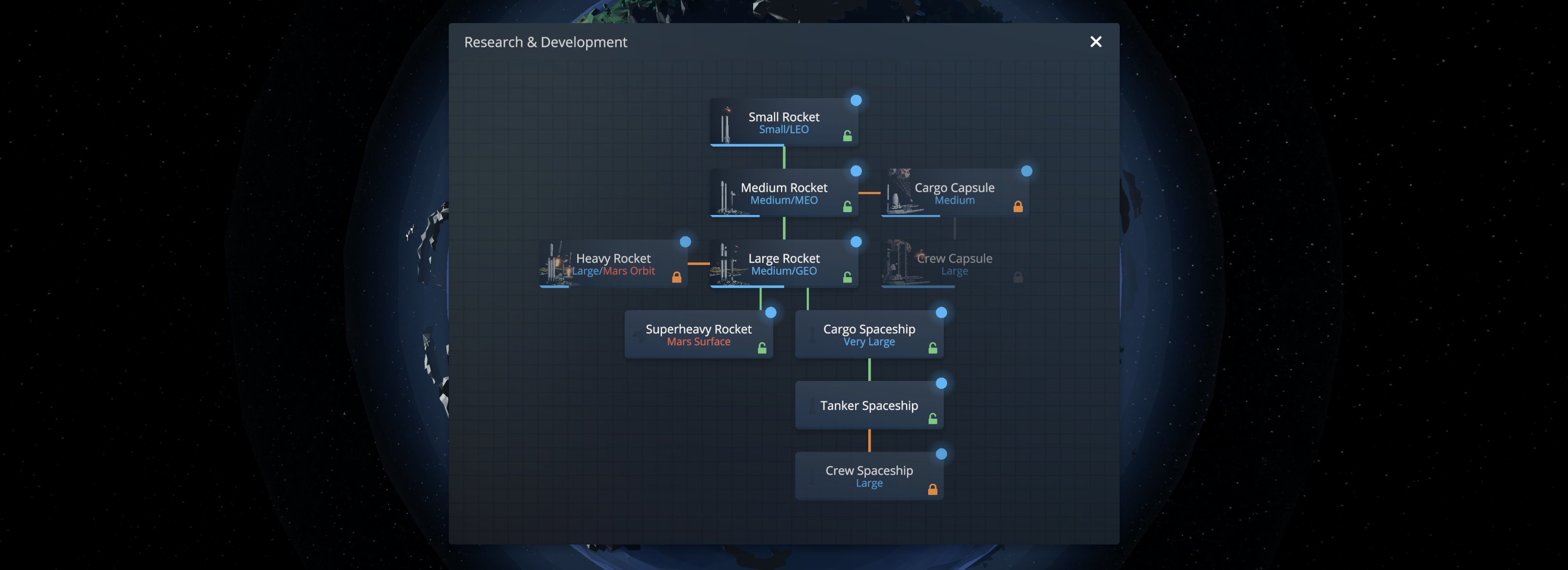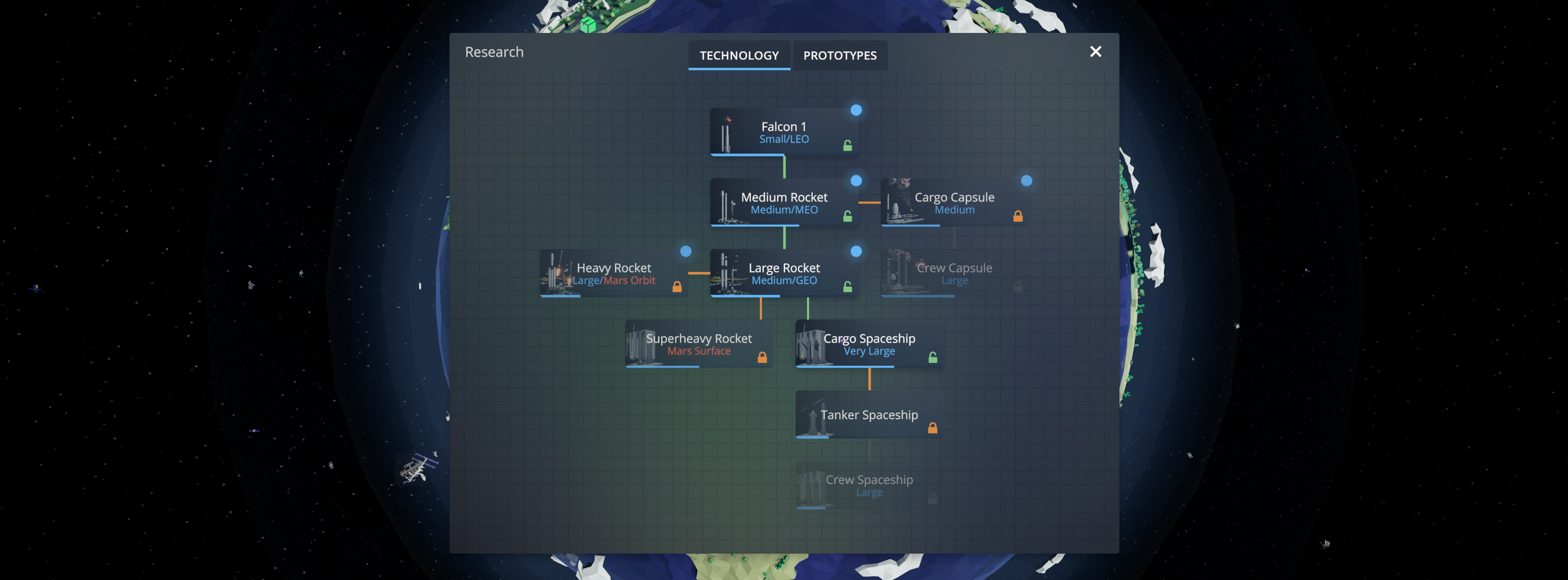 What if it can be done differently? Yes, Exactly. This is what 0.3.2 will be all about. To give you a choice. You will be able to completely ignore capsules and even Heavy rocket. It will be up to you what and when you want to research. Take a look at this little tech-tree sneak peeks.