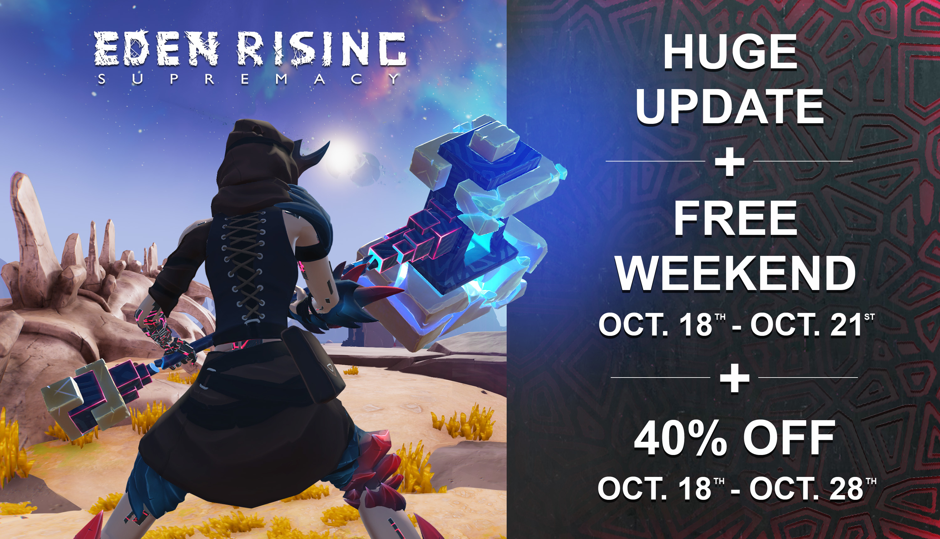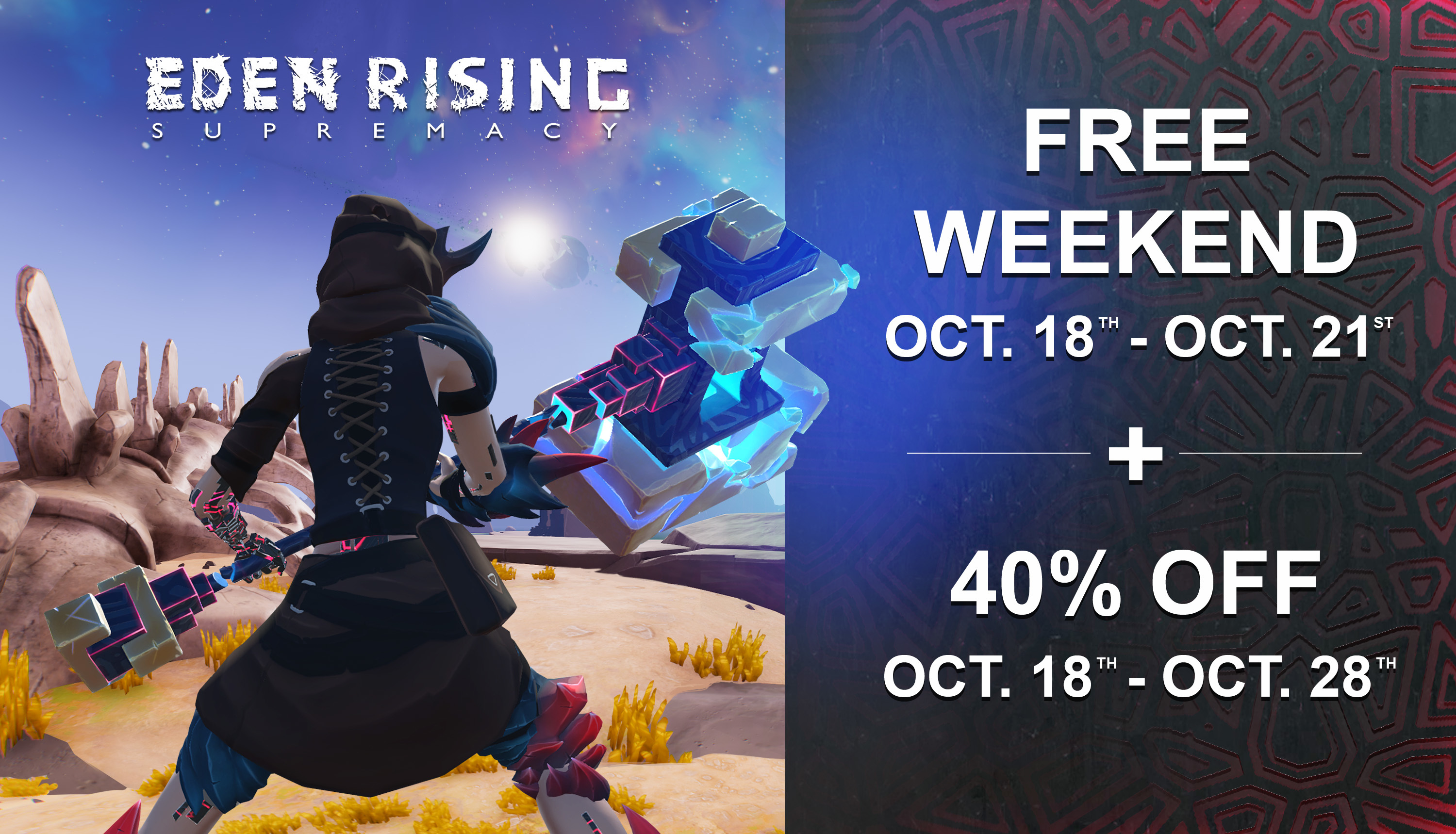You can PLAY EDEN RISING FOR FREE DURING THE ENTIRE WEEKEND OF OCT. 18 - OCT. 21. Go solo or bring your friends with you, this is a unique opportunity to dive into the world of Eden for free!