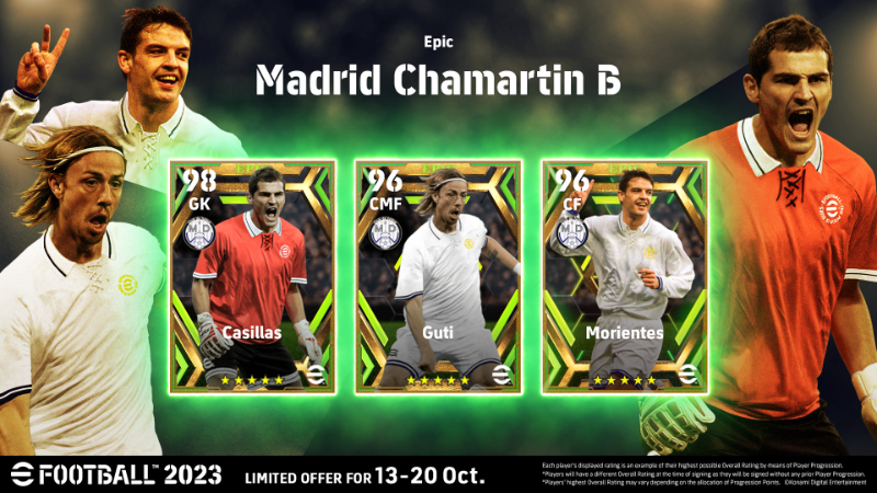 Epic players reflect a standout performance they put out during a specific season during their career. They also feature unique card designs stylized after photos taken during the season they are based on. Design their evolution through player progression, and they will prove to be an indispensable piece of your Dream Team. Moreover, they will have a heightened Team Playstyle Proficiency of "80" for their favored Team Playstyle and a "70" or above for the others. Sign these soccer greats and make your team that much stronger! In addition to the 3 Epic players listed below, 147 other currently active players with Player Value ★★★ or higher will make an appearance in the Special Player List. Available Players: Casillas, Guti, and Morientes.