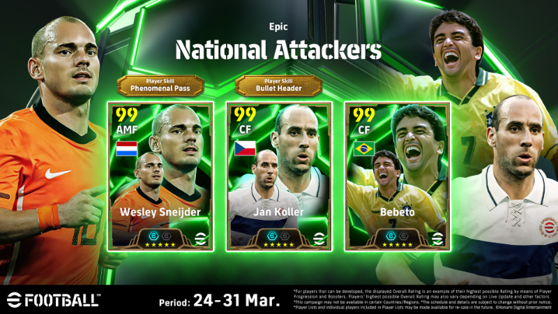 Fierce matches are unfolding worldwide, with teams vying to qualify for the stage of their dreams. To mark this occasion, we're hosting a new campaign. Take part and sign an international from a wide range of nations! Get your favourite player from France, Germany or Italy. Complete the Objectives and sign your favourite international from around the world who is now appearing as a Show Time player! Now, in eFootball™, enjoy teams of internationals facing off in heated matches!