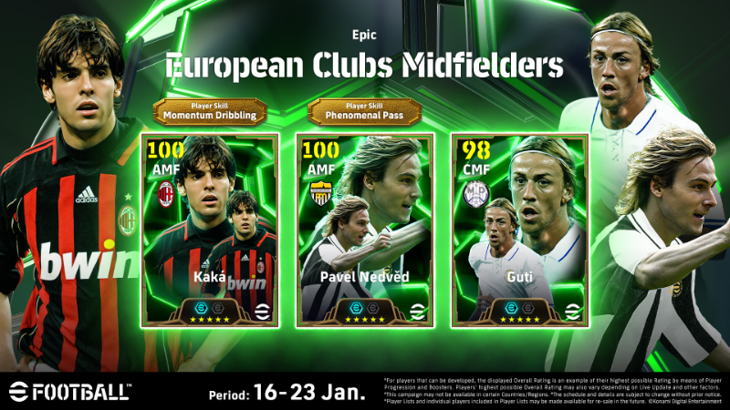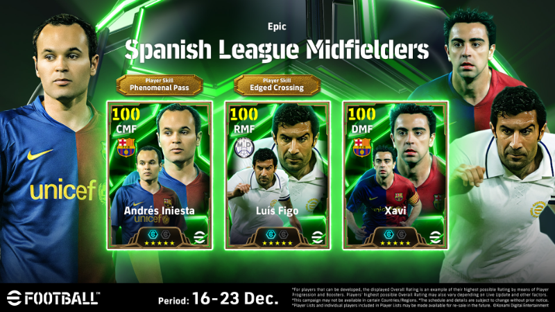 Special Challenge Event Golden Goal Golden Goal Rule special Event! The match will end as soon as one side has scored a goal, with the goal-scoring side deemed as the winner. By completing the challenges, you can earn up to 1 Position Training Program and 20,000 Exp. in each period. Period Round 1: 12/05/2024 02:00 (UTC) - 12/12/2024 01:59 (UTC) Round 2: 12/12/2024 02:00 (UTC) - 12/19/2024 01:59 (UTC) Round 3: 12/19/2024 02:00 (UTC) - 12/26/2024 01:59 (UTC) "Consadole Sapporo" and "Jubilo Iwata" Use your favorite players in this Dream Team Challenge Event! By completing challenges while playing VS AI matches, you can earn a maximum of 20,000 Exp. during each period. Period Consadole Sapporo: 12/12/2024 02:00 (UTC) - 12/26/2024 01:59 (UTC) Jubilo Iwata: 12/19/2024 02:00 (UTC) - 12/26/2024 01:59 (UTC)