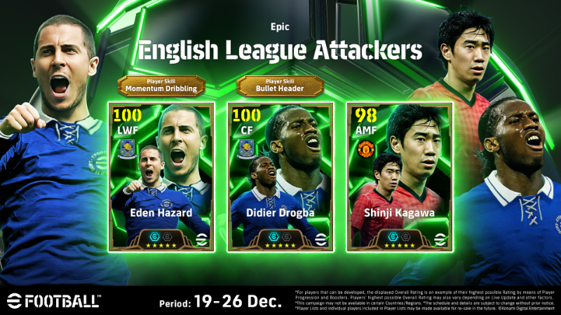 Special Challenge Event Legend: English Clubs All-star This is an Event featuring VS AI matches pitting you against squads assembled based on a designated theme. Go up against the toughest AI opponents with your Dream Team in this Event! Challenge yourself by taking on the "Superstar" and "Legend" Match Level AI. Period 01/16/2025 02:00 (UTC) - 02/06/2025 01:59 (UTC)