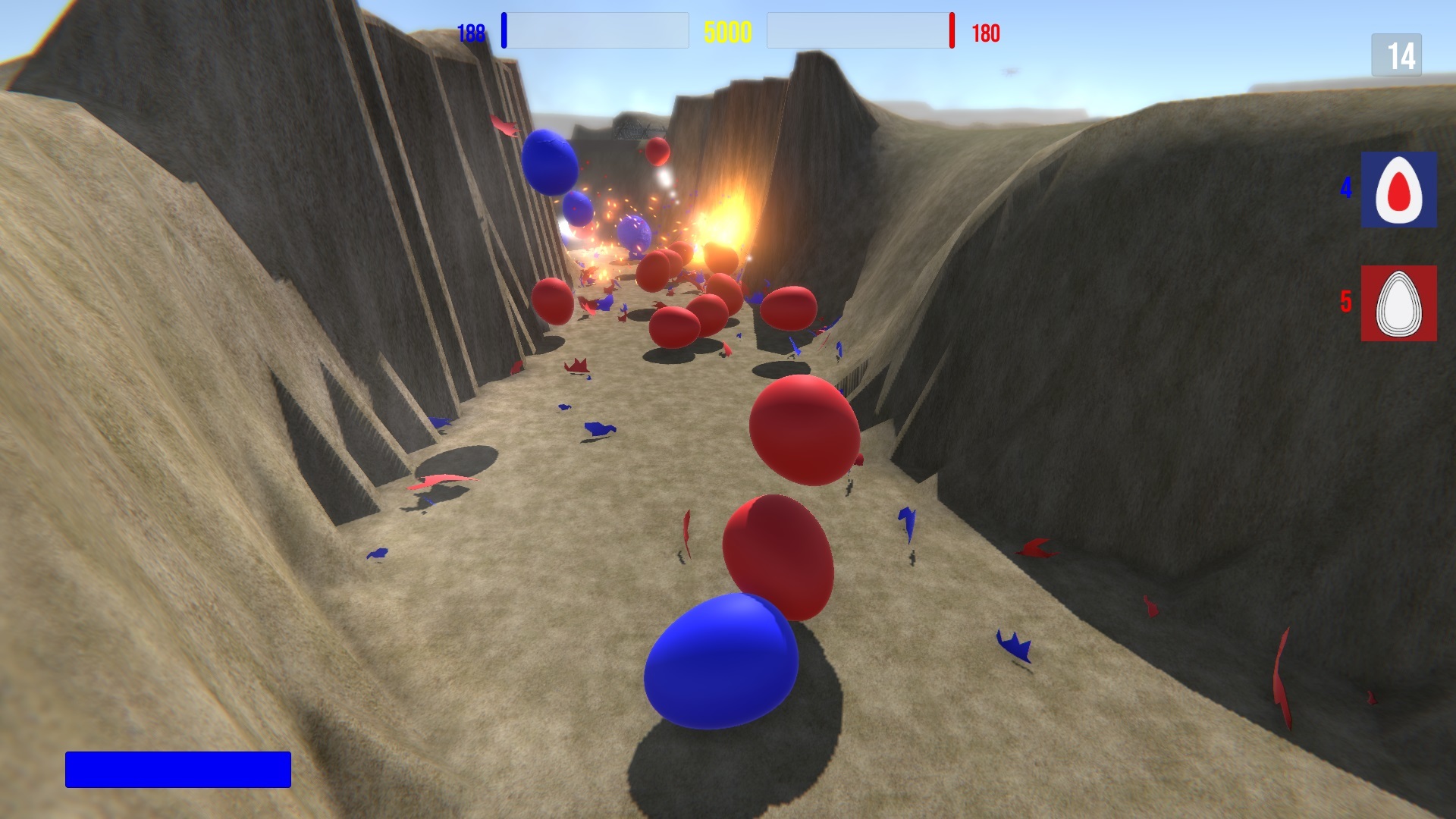 I've also started work on the "Tactical Camera" which activates after you crack and are waiting for the reinforcements. Eventually this is where you'll be able to command your eggs, build defences and upgrade bases. At the moment it's just a spectator mode, but at least you can look around the battlefield!