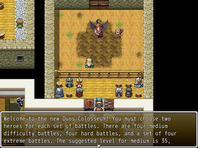 A new update is here and with it a brand new wing of the Colosseum! In this new challenge, you are allowed only two characters who must be able to defeat four battles in a row without changing equipment or saving!