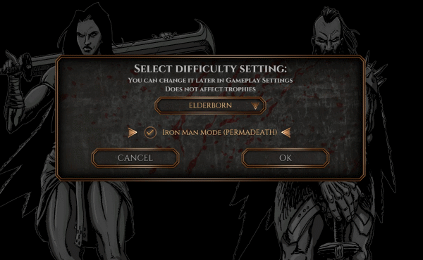 Warriors! Today is a good day to die. Perma-die. Your continuous support keeps us working on improving ELDERBORN and today marks the addition of a much player-requested feature. As if the game wasn't hard enough (yeah, we know it's not for some of you - hats off!), you wanted to have the option to play with permadeath. As in no respawn. You die, you're dead-dead, and the game removes your save file. Yea, some of you feel THAT cocky. So here it is... Ironman Mode!