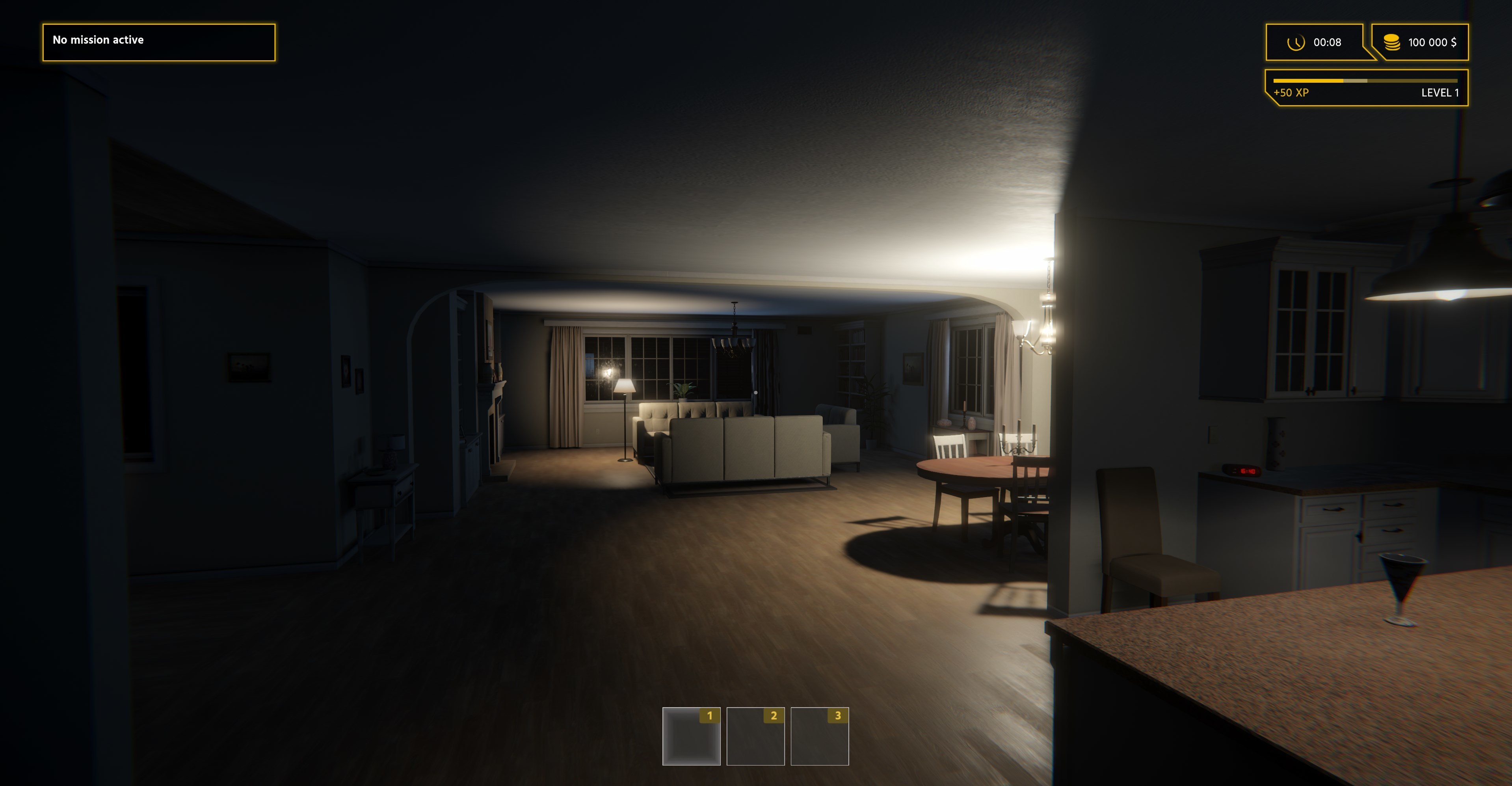 As you can see, there is a unique mood in the night scenes. There is no sunlight, so lamps are the only light sources. But what happens when we turn them all off? Exactly - the house is completely dark.