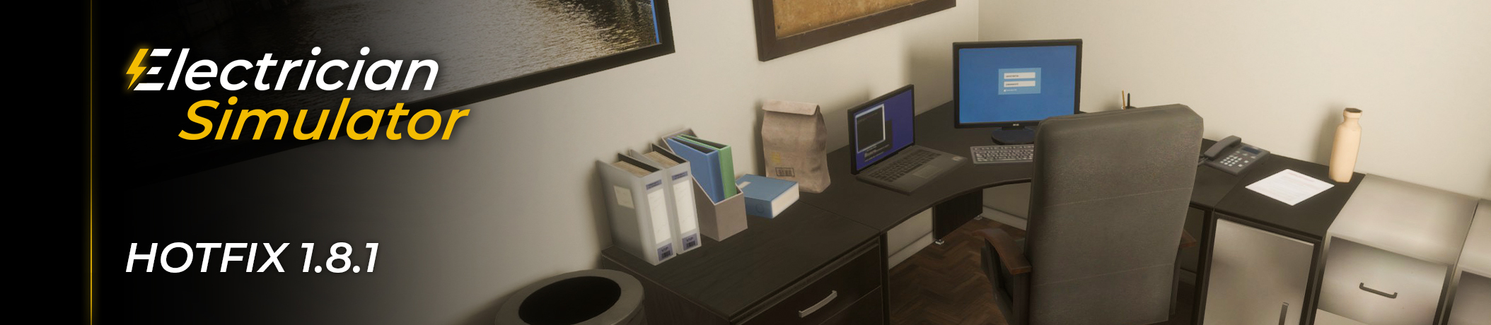 Today we are pleased to announce another update to Electrician Simulator, which fixes some of the bugs that have been reported recently. We want to provide you with the best possible gameplay experience and are constantly developing our game based on suggestions and feedback from our players.