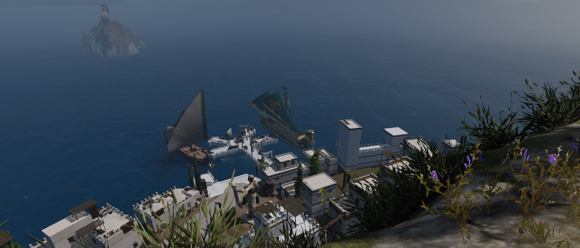 - Rocks and boulder assets added - Villa courtyard, steps and exterior reworked. - Cloth assets added to crate stacks - Water lilies and pads to villa courtyard ponds - Final terrain sculpting, texture painting, decals, set dressing around the Pier and the Village - Statue plinths updated with better textures - New main road through the village - Village building steps reworked - Set dressing around beach overlook