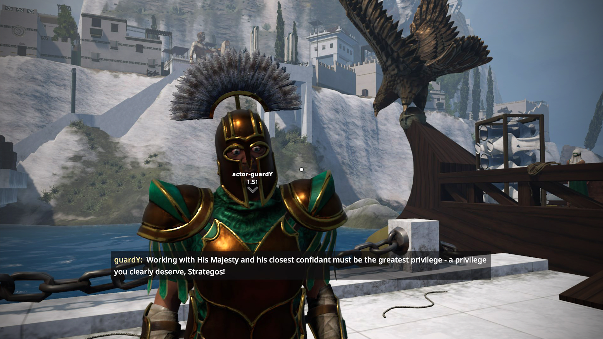 This is a big one and could do with a post in and off itself. This whole sequence in the villa required the updating of nearly every game system to make it happen. Even though it isn’t perfect, it is a start and it finally lets us iterate effectively on all of these systems at the same time. The overlap between the systems makes my brain hurt and the NPCs don’t always make the right decision, but you do get to have a fight with Alexander the Great!