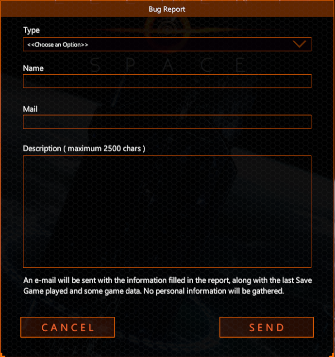 Implemented a Bug Report window to optimize the communication and resolution of problems, it can be opened anywhere in the game by pressing Ctrl + F1, or from a button on the Pause and Main Menus.