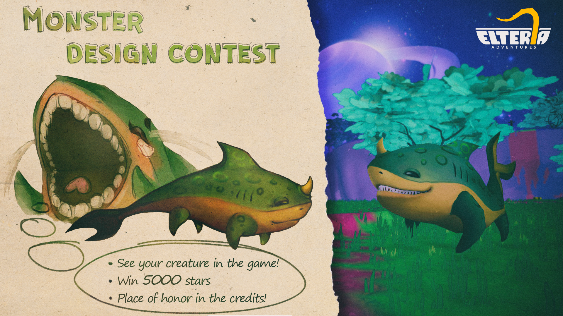 We are announcing the contest for the coolest and most interesting monster concept! 🎉 Winner’s creation will appear as a creature in Elteria Adventures and you’ll get a prize and place in credits!