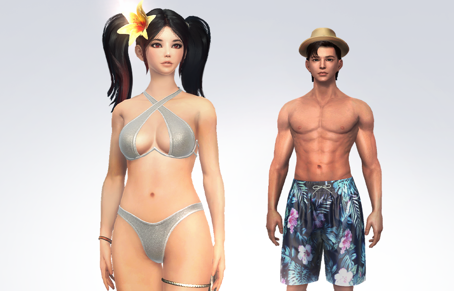 Female: A white bikini, which is quite the eye-catcher at beach parties. Its thin alluring curves reflect the designer's desire to keep up with the latest trend.