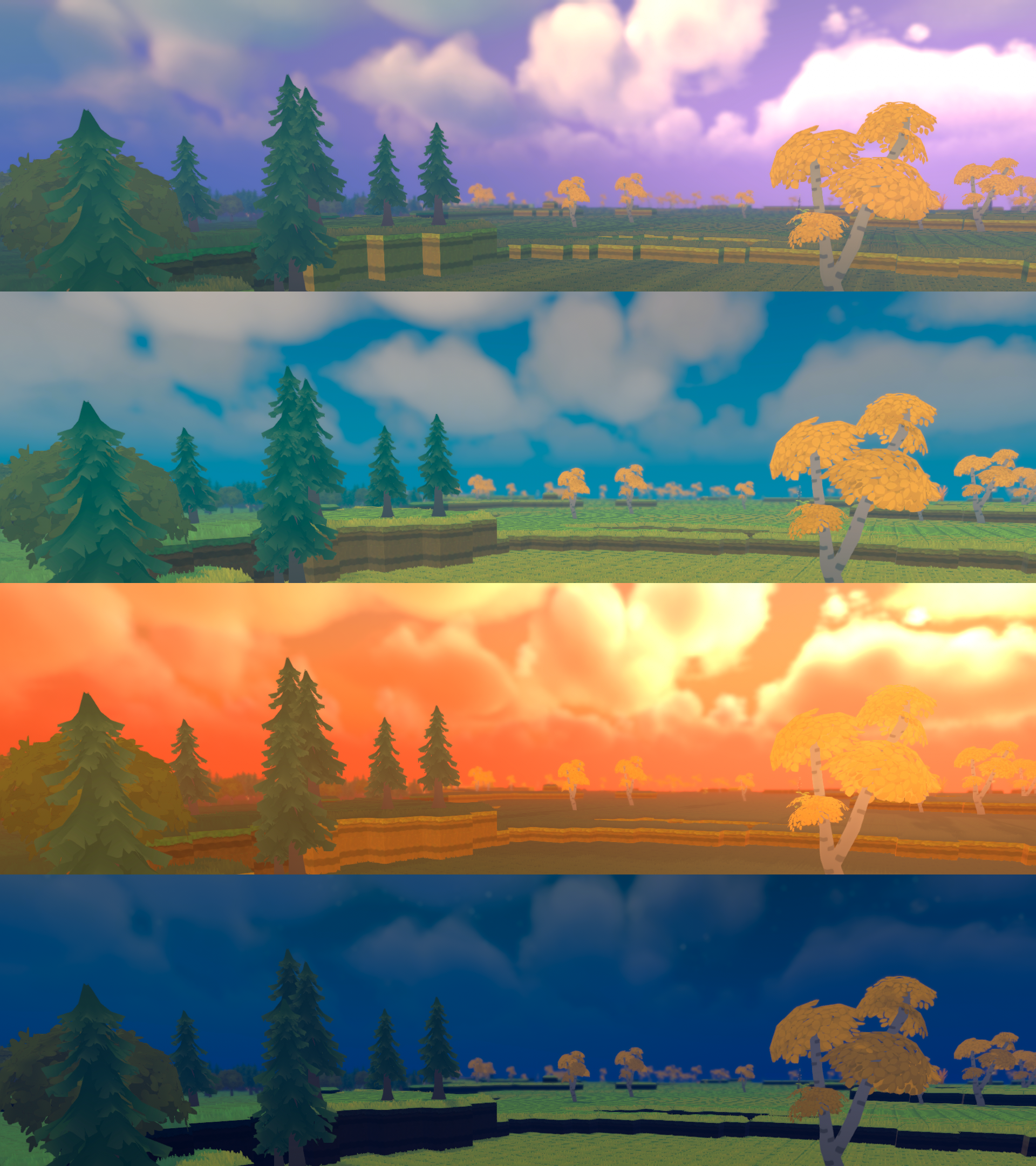 When I began, my focus was on making visible, high-impact changes first. For example, about 95% of the screen space when you begin is taken up by trees, grass and sky. Changing these few 3D models first would create a very strong impression and allow us to quickly and easily figure out the rest of the art style.