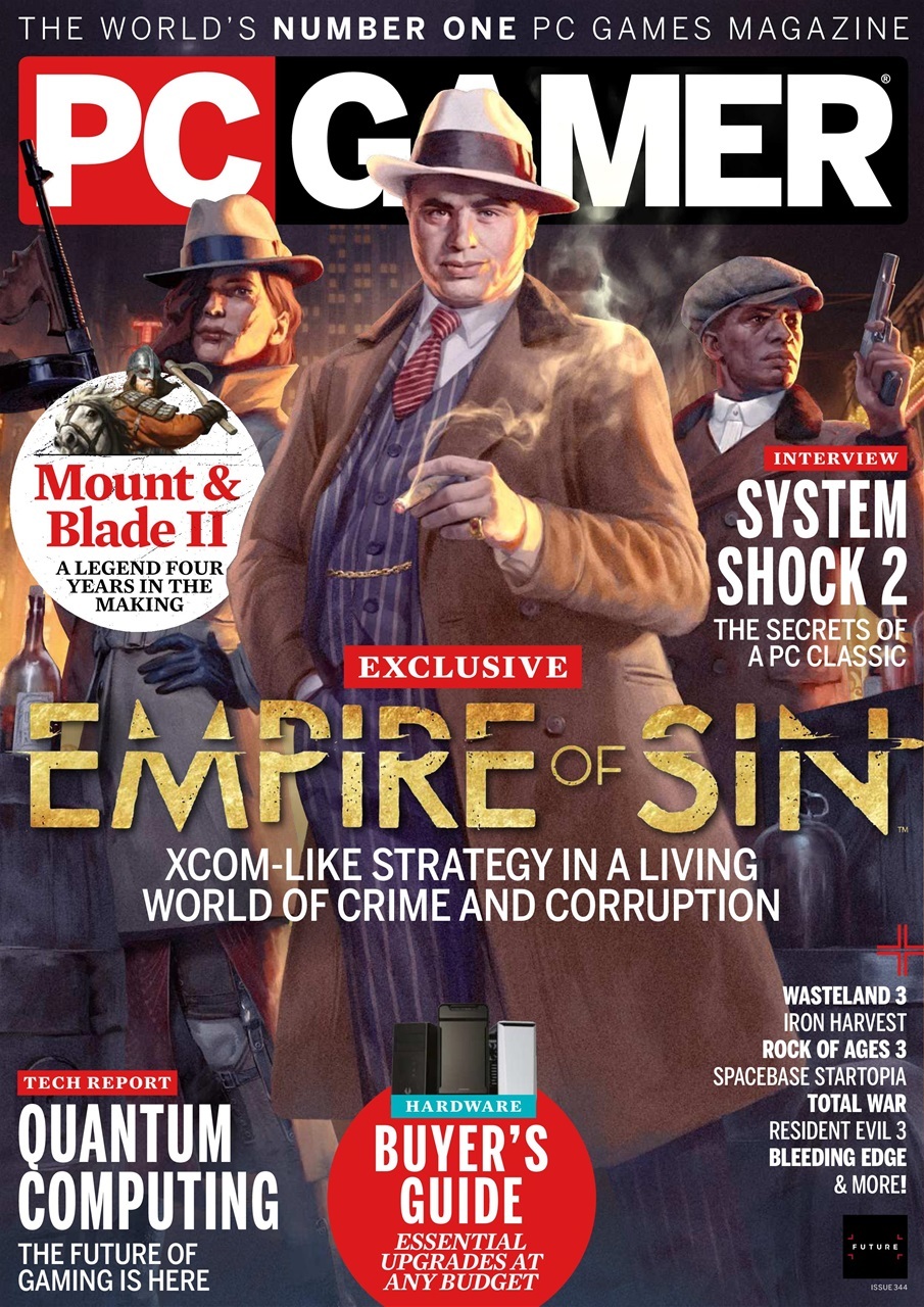 This swell issue contains an 8 page feature on Empire of Sin, with all the details on the game we're all here for. Issue 344 of PC Gamer is out now, so make sure to snag a copy before the coppers raid the brewery, capisce?