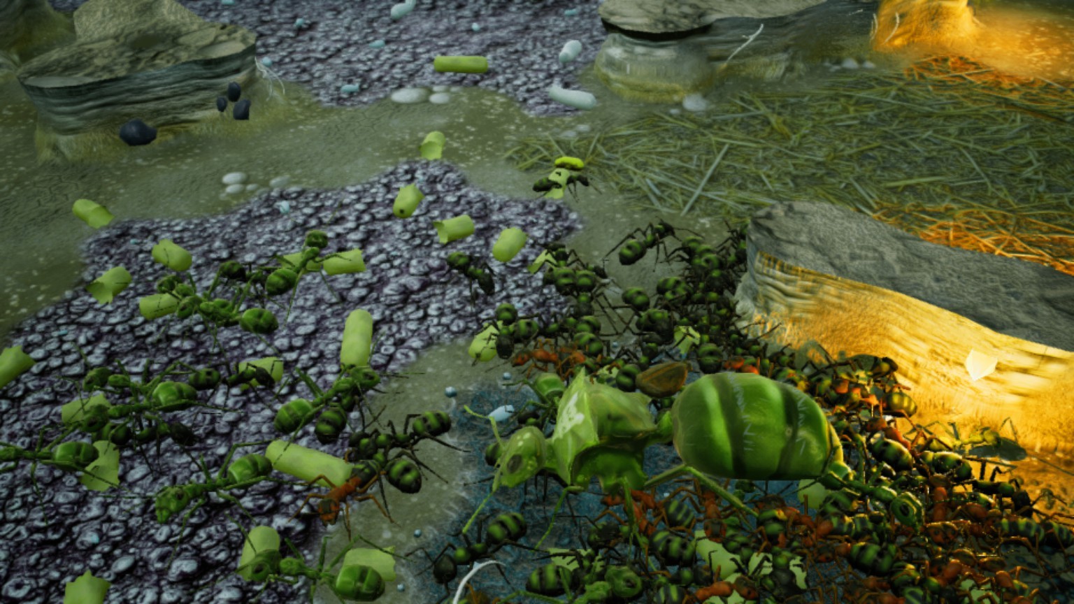 Greetings all! We hope you've enjoyed your summer. Time moves on relentlessly, and as we chug the first pumpkin spice latte of autumn we've made significant strides in the progress of the leafcutter levels as well as plenty of other exciting things. We've recorded with our voice artists Mary Jo, Eric and Callum (Scientist 1, Scientist 2 and Narrator respectively) for the next levels and we're delighted with their work. Before we conclude our work on 3.1, 3.2 and Formicarium Challenge 3, there are some missing bits and pieces in the existing game that need finalising in preparation. Our current plan is to do an interim update between now and the leafcutter update, and that's going to be fairly soon. Let's get on to what that'll include!