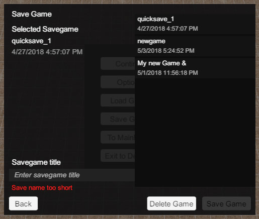 Another point was the whole user settings. We can store and load settings and savegames for multiple users. Savegames will also have backward compatibility as this game is in constant progress during the alpha. We do that by simply having a converter from one version to the next once something has changed. Of course, just basic UI but it does its job.