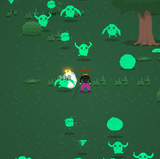 - Reworked sprites of the forest biome. I was not satisfied with the old visuals. - Reworked the way enemies move towards the player. It should be more organic now. - Added damage numbers when you hit an enemy. - Reworked the way enemies are spawned. It should be more progressive at the start of the game and become more agressive as you go on. - Reworked most of the enemies stats. Greatly reduced speed for some really fast monsters and reduced speed in general. Reduced health points of some tanky monsters