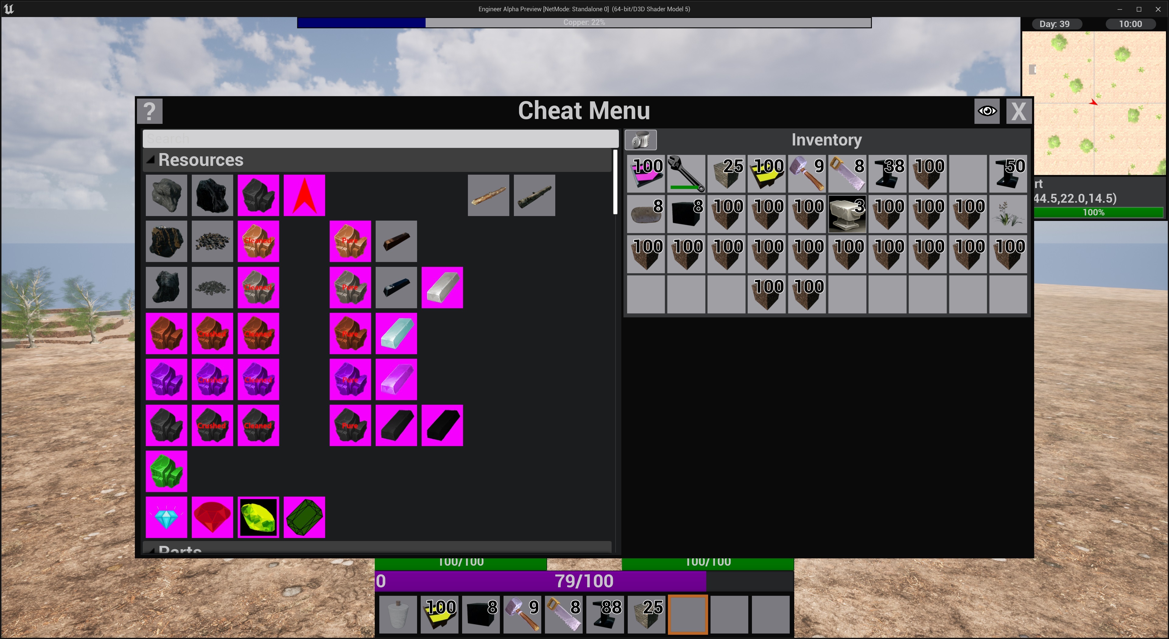 The code was future proofed as much as I could at present the cheat menu and item selector use the exact same list their respective windows just have different behavior when an item is clicked. Also the list of items is generated when the game starts and includes all Items that exist in the game as well as an option to hide things that are not ready for players to see just yet.