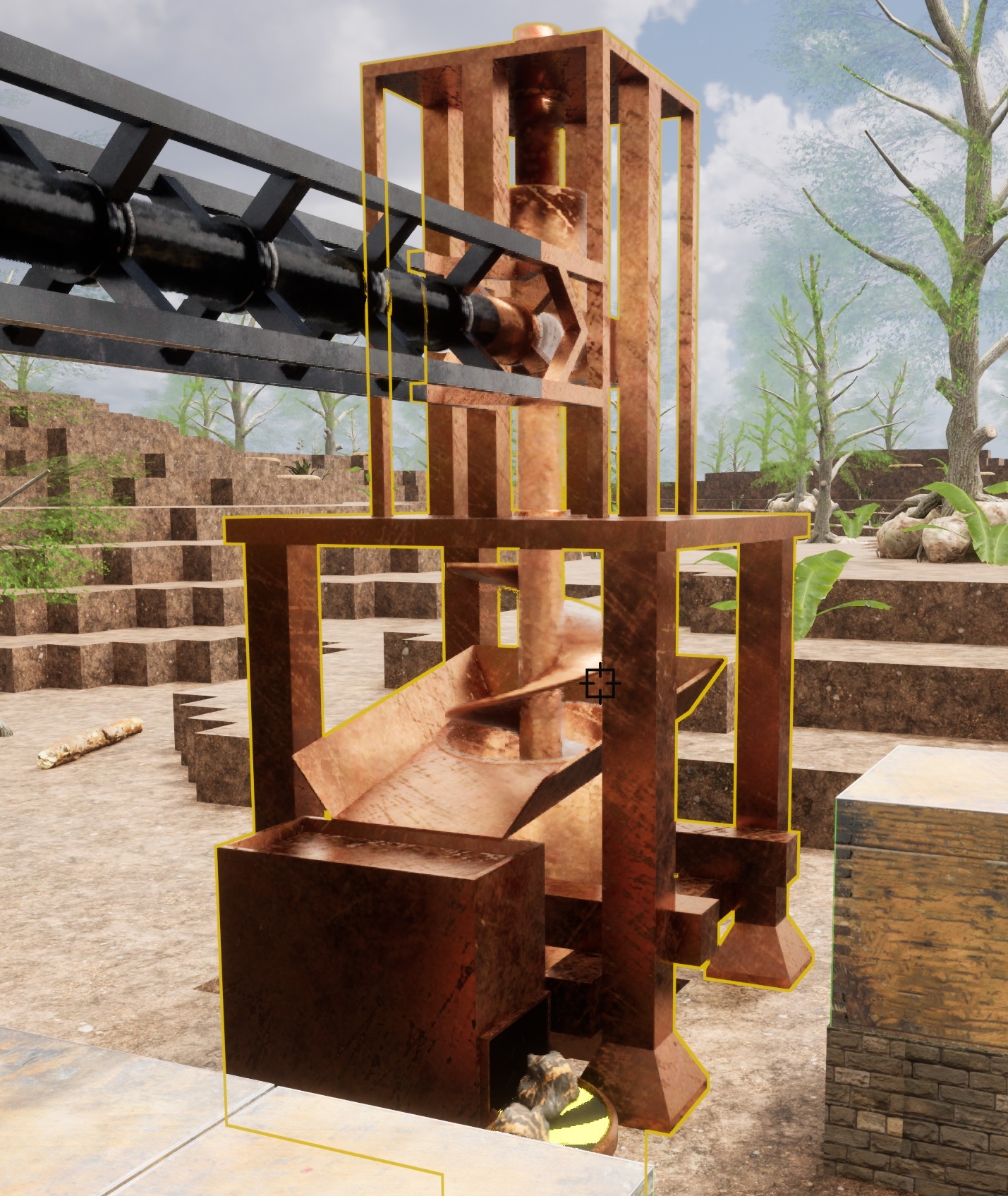 With the mining drills the goal was to move the visuals from down below, that you never see, to up above the surface. I also wanted it to be clear where items could be extracted from which is why I have added a small "hopper" at the front that will serve as the item extraction point. The auger spins as it drills and looks fantastic.