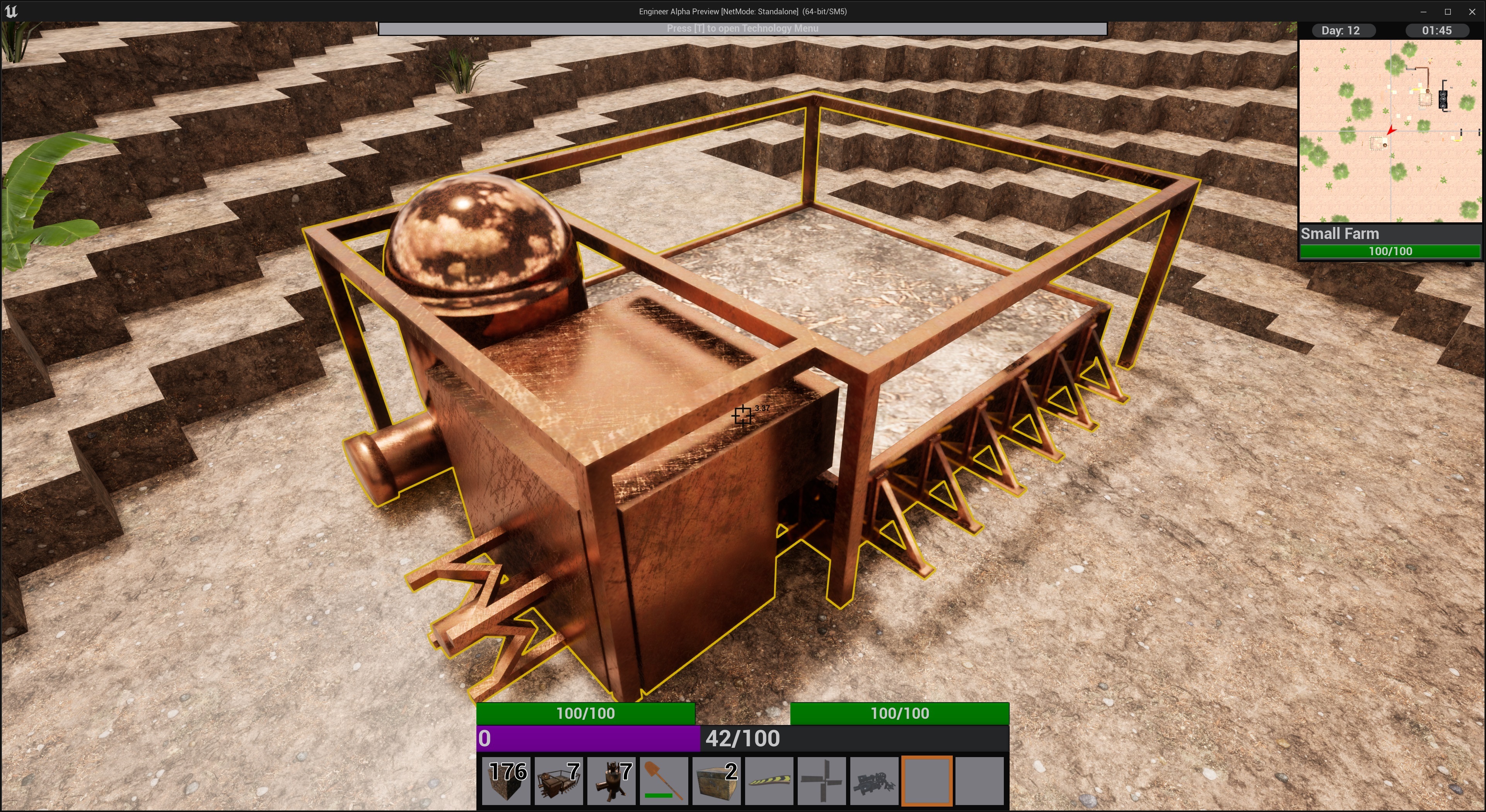 The farm is one of the new buildings in 0.4 and was actually one of the first things I started working on with this version but got sidetracked by fluids, because a farm without water would be rather strange. The current farm being added is the small farm. It is unlocked late in the copper tier and has it's own tech to unlock it.