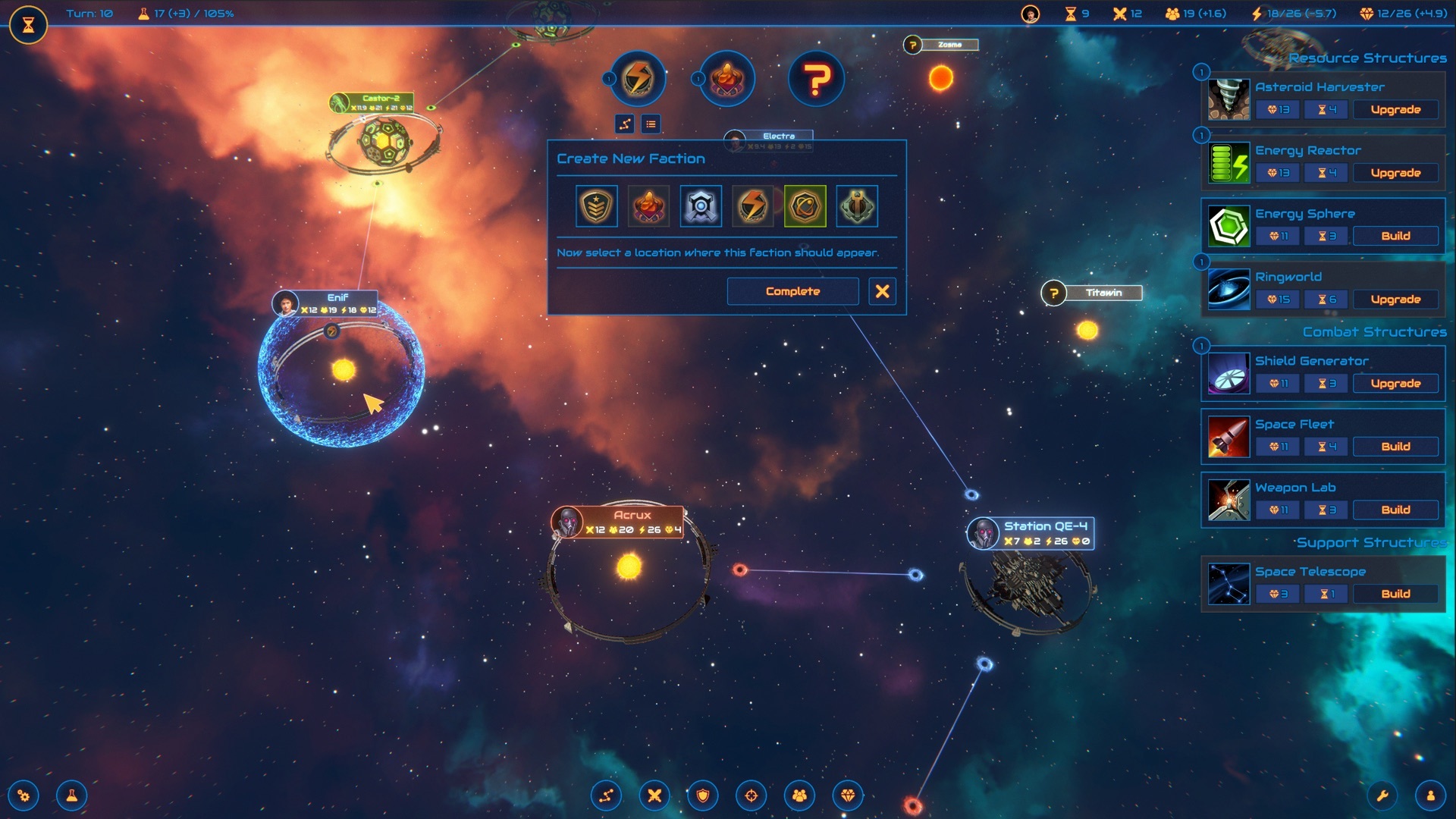 We also ended up replacing the All Action Costs modifier with more granular Transfer Costs, Weapon Costs, Attack Cost, and Hyperlane Cost. This allows for more strategic decisions regarding research and faction choices.