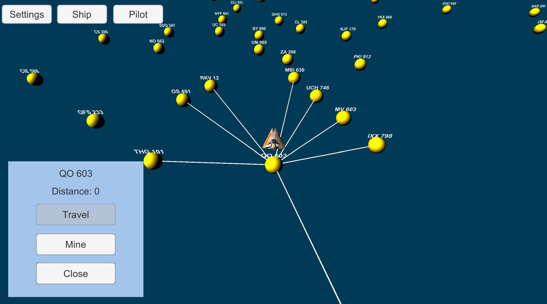 The first working prototype was a scifi RPG where the main character flew around star systems and engaged in arcade battles. After winning a battle the player could mine minerals and upgrade their ship combat components and the fuel tank. The character could also gain experience from battles and level up their battle skills. It was a simple game that ultimately didn’t have any interesting mechanics, so I decided to keep brainstorming.