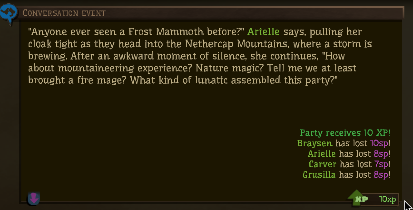 Most excitingly, this fix unlocks a bunch of content that was already implemented, but wasn’t previously accessible. Tzarina Darkmane, Ursul Mangleclaw, Jenetta Lionheart and the famous bard, Szolem, are all now unlockable through the Frozen Games and a whole new style of road encounter now works properly for the first time. A few of many examples…