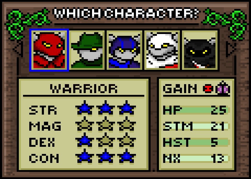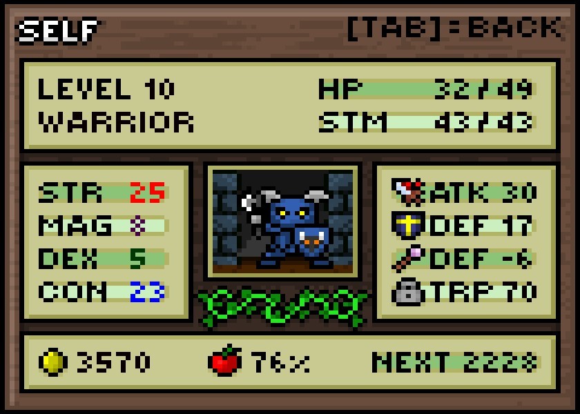 +Any ATK / DEF / MDEF or TRAP score that's over 99 will be displayed as 99. The actual score itself will remain 120 or whatever but due to the new icons I had to keep it as a double digit number for space. This will most likely get noticed by high level Thieves for lockpicking / disarming traps.