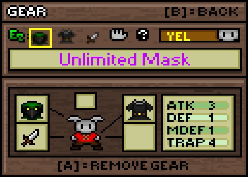 Rogue's Bow- A fine bow for both warriors and thieves alike. With its poison-tipped arrows and good attack power it'd be cool enough, but simply holding it allows you to spot those trapped red chests during a Trap Floor Event.